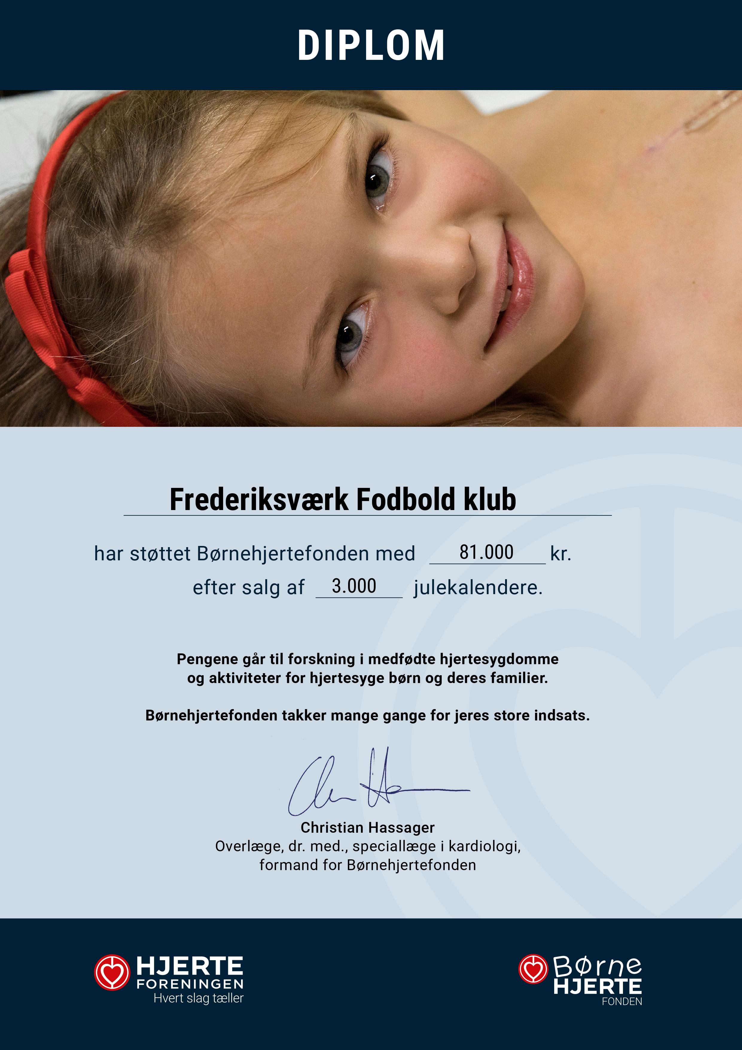Jeg vil gerne benytte lejligheden til at sige tusind tak for jeres store støtte og hjælp i forbindelsen med salget af årets julekalender for Børnehjertefonden. Det betyder rigtig meget for vores fremtidige arbejde med de mange små danske hjerter og deres pårørende.